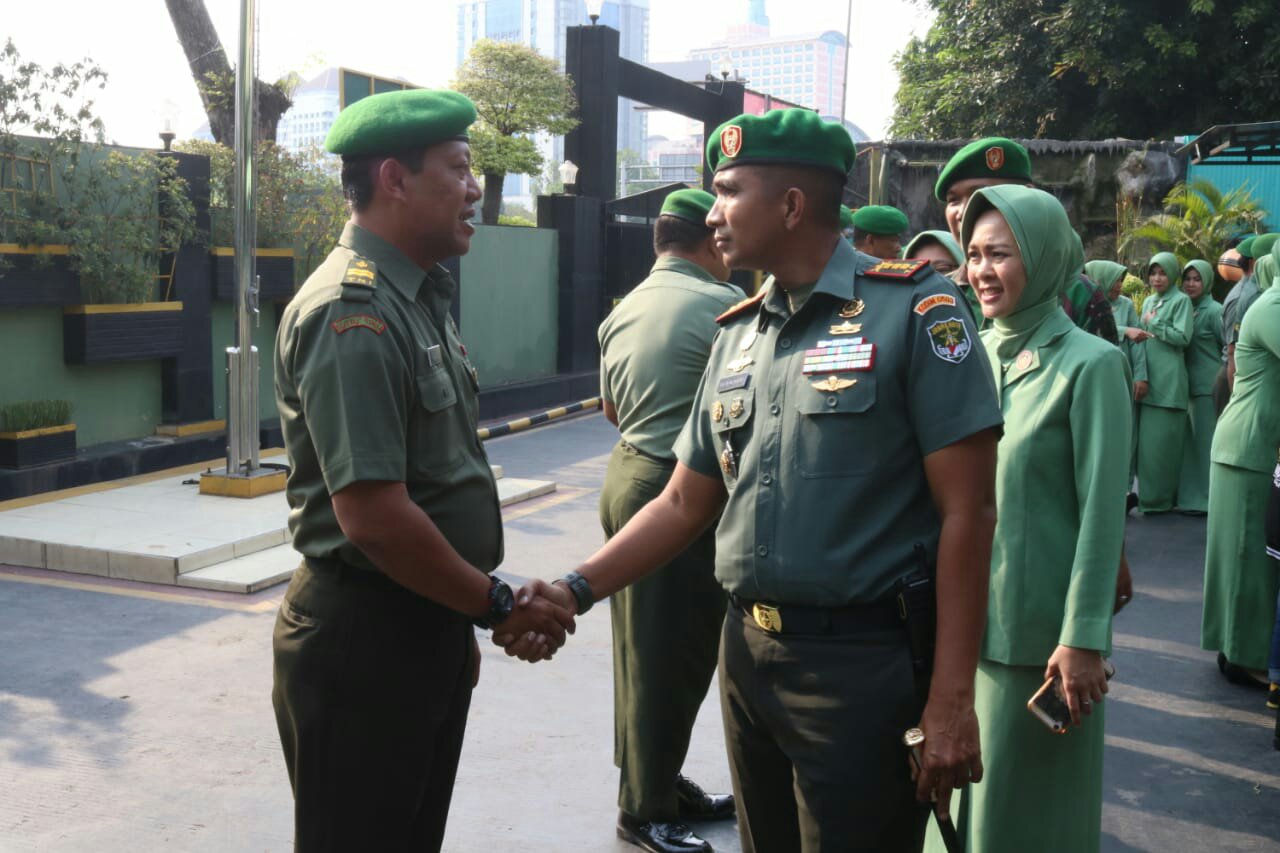 dutainfo.com-Jakarta: Dandim 0503/Jakarta Barat Kolonel Kav Valian Wicaksono Magdi, S.Sos pimpin upacara tradisi corps report kenaikan pangkat Bintara dan Tamtama personel Kodim 0503/JB sebanyak 25 personel, di halaman Makodim 0503/JB, Jalan S Parman, Jakarta Barat, pada Selasa (1/10/2019).