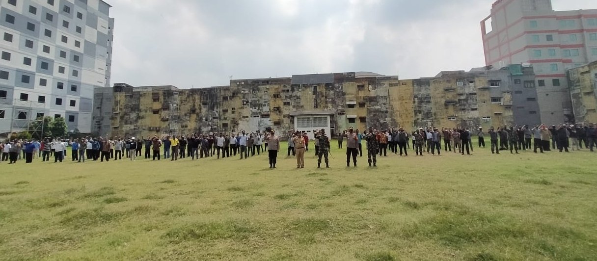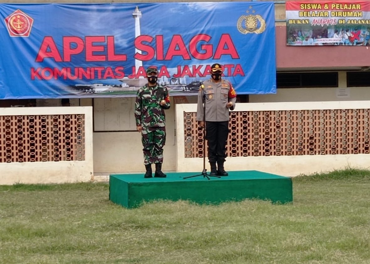 Foto: Dandim 0503/JB Kolonel Inf Dadang Ismail Marzuki dan Kapolres Jakbar Kombes Audie S Latuheru saat gelar apel RT/RW Dan Camat se Jakbar