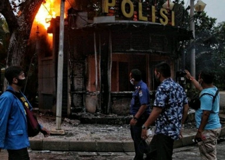 Foto: Pos Polisi dibakar Perusuh Anarko (ist)