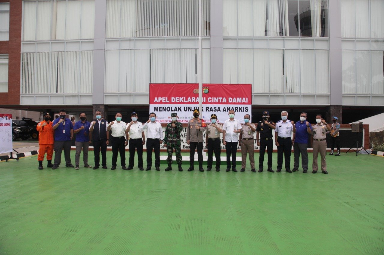 Adanya hal tersebut maka kami disini bersama segenap pihak menjaga wilayah Bandar Soetta agar selalu kondusif serta menolak aksi anarkisme.