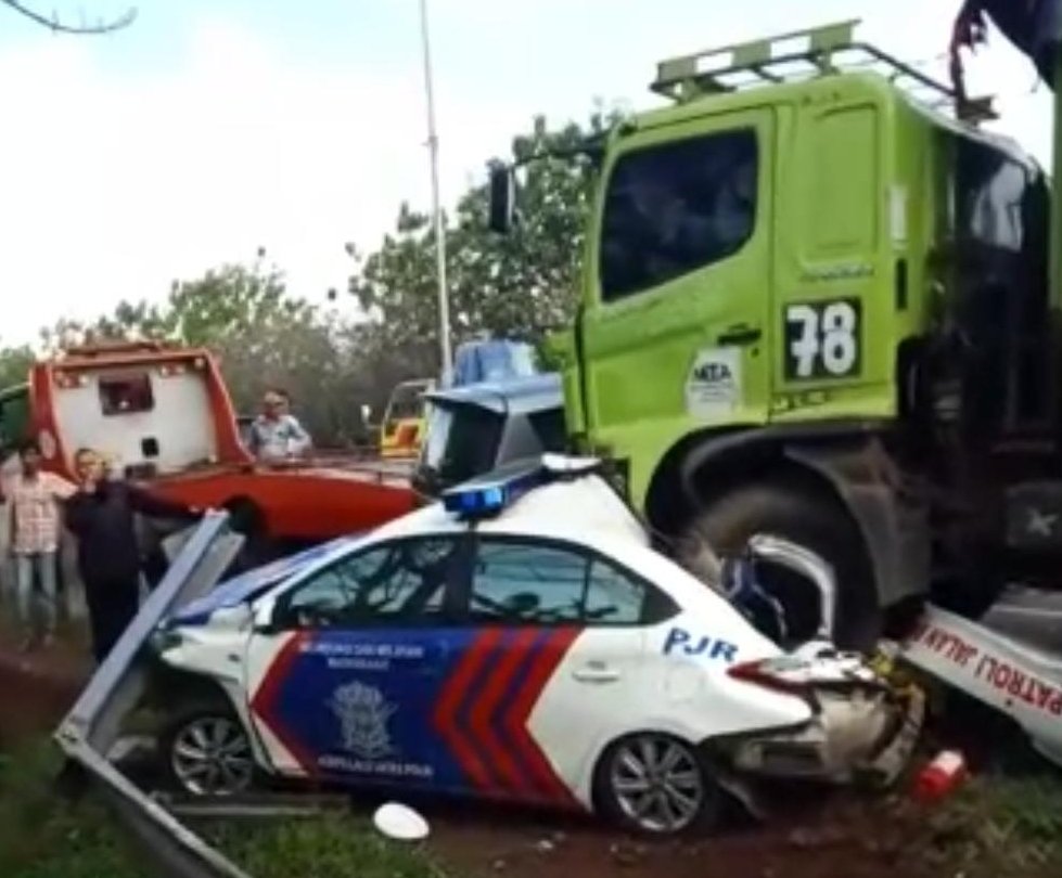 Tabrakan beruntun yang melibatkan 4 kendaraan ini sedan patroli PJR 1127-15, Suzuki Ertiga B 1979 WZB, kendaran derek tol milik PT Astra Toll serta Hino dump truk B 9507 PYW.