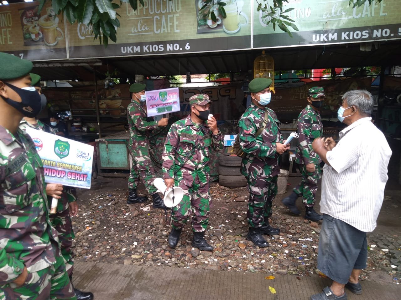 dutainfo.com-Jakarta: Dalam rangka sosialisasi “Jakarta Bermasker di massa PPKM, Babinsa Koramil 03/GP, Kodim 0503/JB bersama Tiga Pilar Jatipulo, Jakarta Barat, melaksanakan edukasi dan pembagian masker gratis.