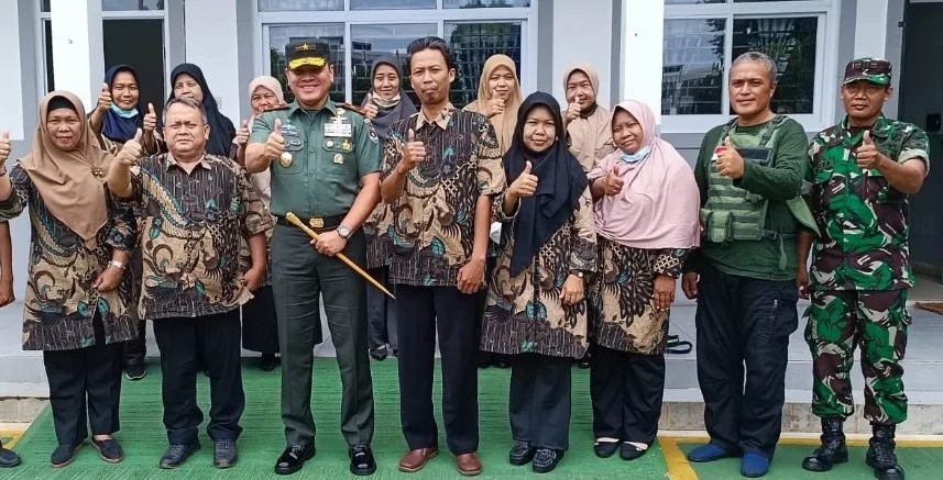 Dalam kunjungan kerja Danrem 052/Wkr, melakukan pengecekan di kantor kepala sekolah, ruangan kelas, dan peralatan yang digunakan dalam belajar di Sekolah Dasar Yayasan Kartika Jaya.