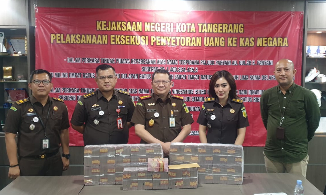 Masih kata Erich ekseskusi pertama dilaksanakan berdasarkan putusan Mahkamah Agung RI Nomor: 2021 Jo. Putusan Pengadilan Negeri Tangerang Nomor: 1932/Pid.Sus/2019/PN. Tng tanggal 3 Februari 2020, dalam perkara tindak pidana Kepabeanan dengan terpidana Paluck Paryani Ad.Gulab K. Paryani, berupa pidana denda Rp 1.400.834.445,8.