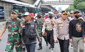 Berdasarkan pantauan dilapangan tampak terlihat Kapolres Metro Jakarta Barat Kombes Pol Pasma Royce bersama dengan Dandim 0503 JB Kolonel Kav I Made Maha Yudhiksa melakukan pengawal terhadap sejumlah masyarakat dari elemen buruh asal Tangerang dan sekitarnya