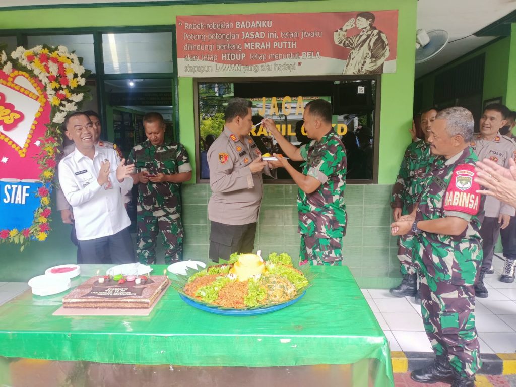 Berdasarkan pantauan dilapangan tampak terlihat kegiatan dilanjutkan dengan pemotongan nasi tumpeng dan kue ultah selanjutnya tampak terlihat momen Kapolsek Kalideres dengan Danramil Kalideres saling menyuapi sebagai wujud kesolidan dan sinergitas. (Tim)