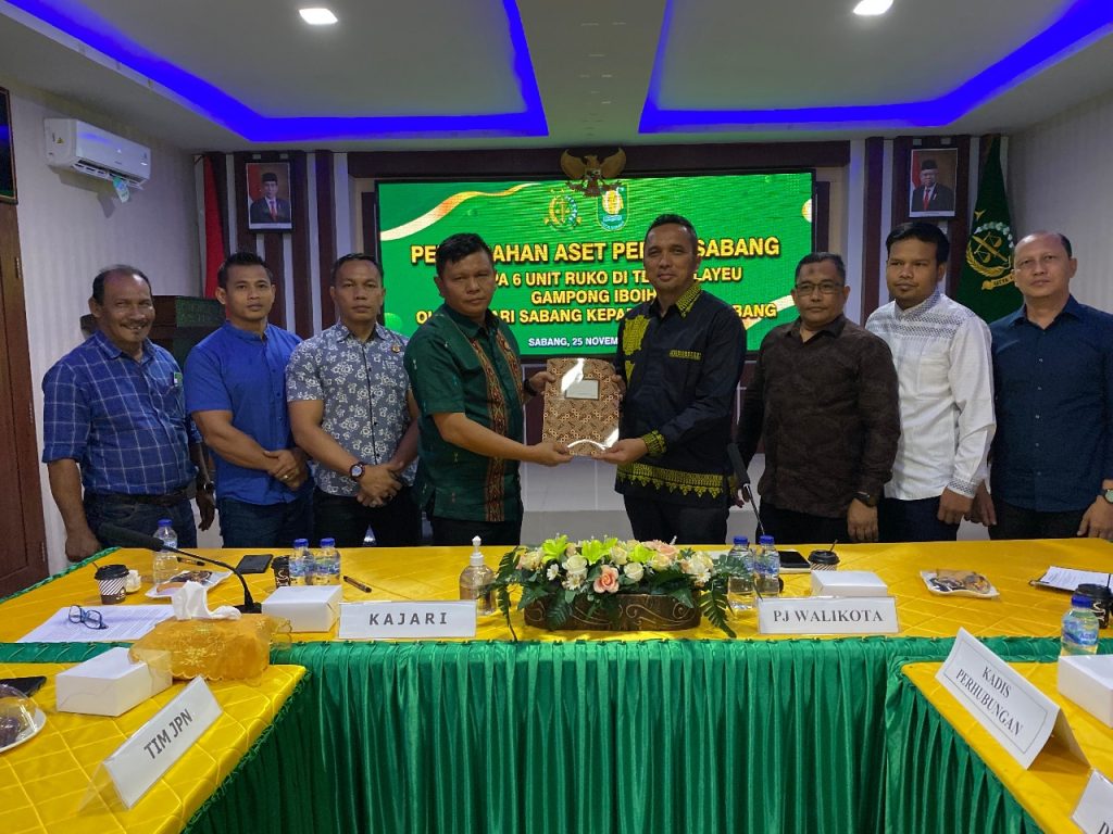 Selanjutnya sambung Choirun, penyerahan 6 unit ruko milik Pemko Sabang sebagaimana bukti Sertifikat Hak Pakai Nomor 00160 seluas 1,050 M2 tanggal 14 Desember 2020 yang ditaksir senilai Rp 1.500.000.000, langsung kami serahkan kepada Pj Walikota Sabang Drs Reza Fahlevi dengan disaksikan beberapa pejabat Pemko Sabang.