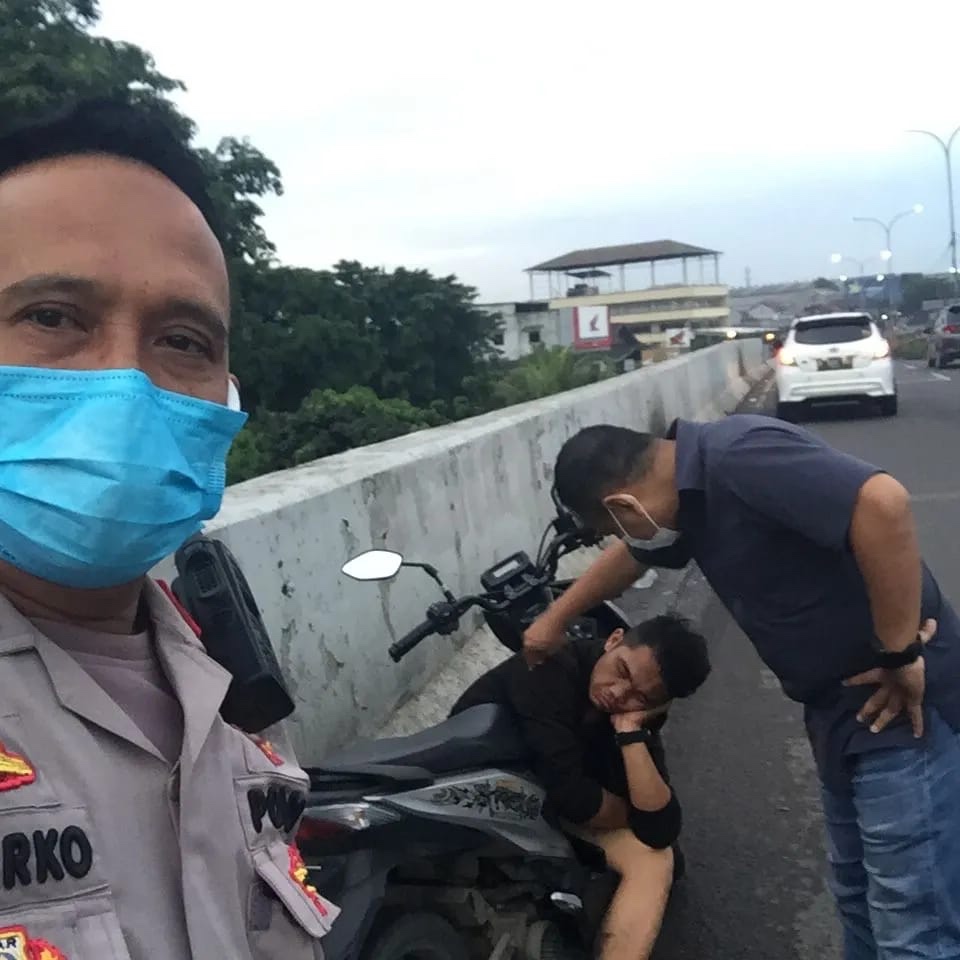 dutainfo.com-Jakarta: Respon Cepat Anggota Polsek Jatiuwung Polres Metro Tangerang Kota Datangi Pemotor Diduga Mabuk Dan Tidur Terlelap di Flyover Jatiuwung Tangerang.