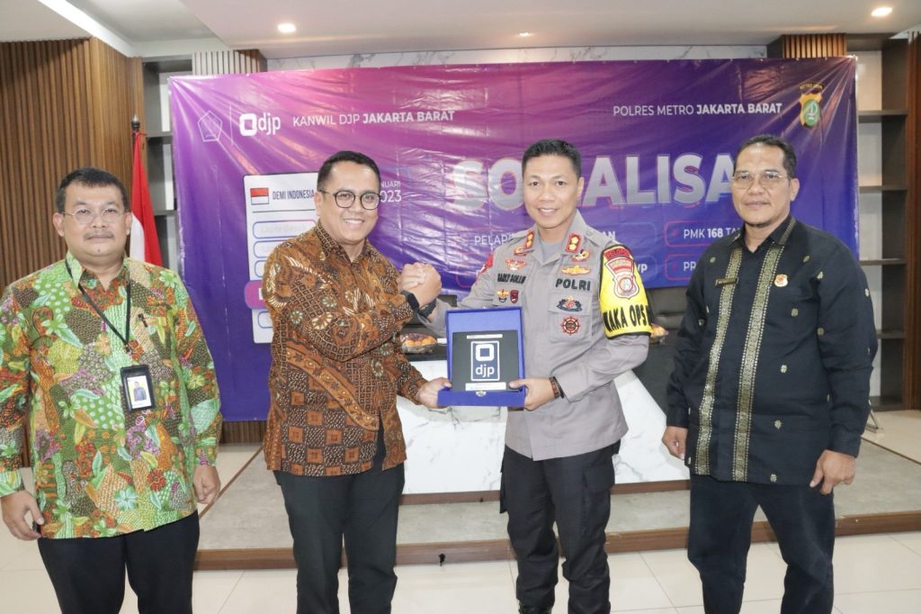 dutainfo.com-Jakarta: Kantor Wilayah (Kanwil) Direktorat Jenderal Pajak (DJP) Jakarta Barat menggandeng Polres Metro Jakarta Barat dalam kegiatan sosialisasi perpajakan di Aula Polres Metro Jakarta Barat,Kamis, 18/1/2024.