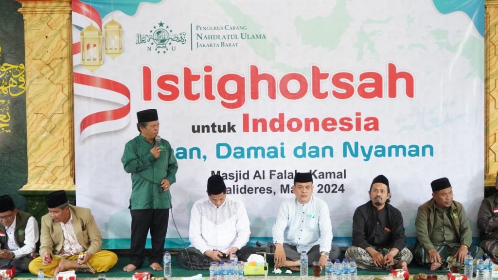 dutainfo.com-Jakarta: Pengurus Cabang Nahdlatul Ulama (NU) Jakarta Barat menggelar kegiatan istighotsah yang bertajuk “Untuk Indonesia Aman, Damai, dan Nyaman” di Masjid Jami Al Falah Kamal, Kalideres, Jakarta Barat, Sabtu, 2/3/2024.