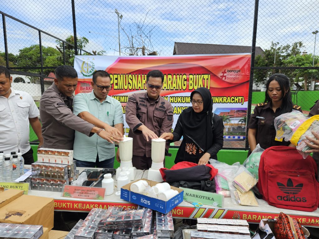 Pemusnahan barang bukti perkara tindak pidana narkotika, kesehatan dan perkara tindak pidana umum, perkara tindak pidana khusus serta perkara tipiring dengan berbagai barang bukti diantaranya berupa jenis sabu – sabu sebanyak 110,63 gram, jenis ganja sebanyak 65,92 gram, jenis obat-obatan Trihexyphenidyl sebanyak 6.253 butir, jenis pil mengandung Asetaminofen sebanyak 10 butir dan hp, dompet, sedotan, plastik klip, kartu atm, timbangan digital, bong, pipet, tas, linggis, gergaji, barang kena cukai hasil tembakau (Rokok Ilegal) sebanyak 10.408 bungkus serta minuman keras sebanyak 2 botol, gelas aqua 1 buah, bungkus Chocolatos 1 buah dan serbuk diduga dari tanaman Palakia sebanyak 0,26 gram.