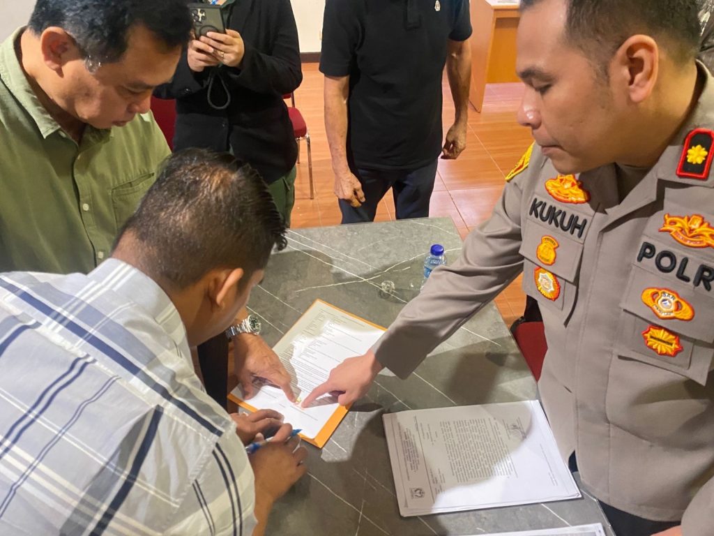 Sebagai bentuk komitmen penyelesaian, kedua belah pihak menandatangani surat pernyataan yang dituangkan dalam perjanjian resmi.
