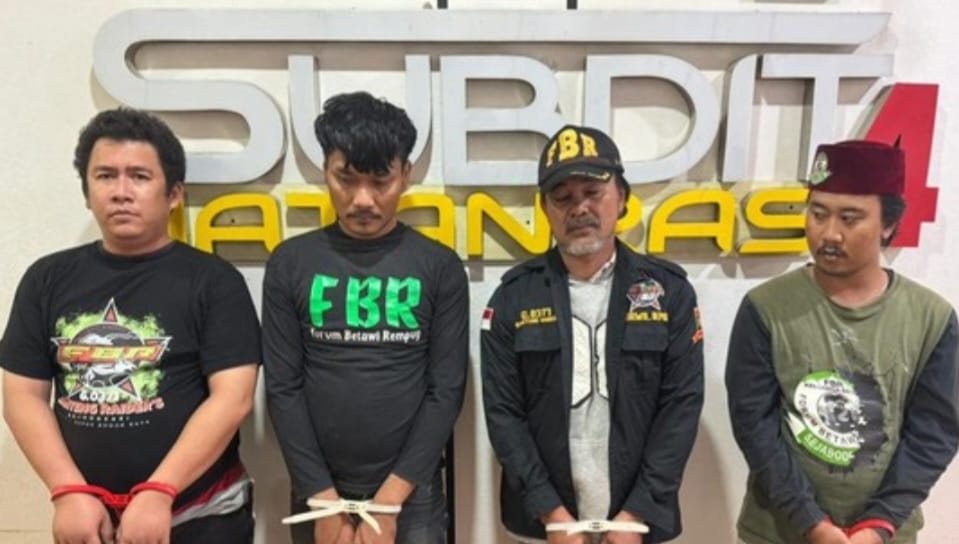 dutainfo.com-Jakarta: Polisi Daerah Metropolitan Jakarta Raya (Polda Metro Jaya), mengamankan Ketua Ormas FBR Bojongsari, Depok, dan tiga anggotanya, berinisial AK, NN, RS, serta IM, adapun penangkapan ke empat orang tersebut terkait pemerasan pedagang asongan hingga pungki uang bulanan ke pemilik toko.