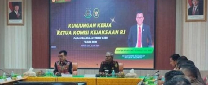dutainfo.com-Aceh: Ketua Komisi Kejaksaan (Komjak), Pujiyono Suwadi, menyampaikan pengarahan kepada para Kepala Kejaksaan Negeri di Aceh.