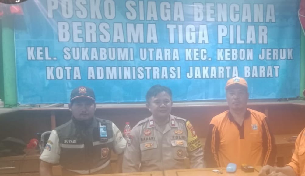 Dutainfo.com-Jakarta: Dalam rangka memastikan kesiapsiagaan menghadapi potensi bencana banjir, jajaran Polsek Kebon Jeruk bersama unsur Tiga Pilar melaksanakan kegiatan koordinasi dan siaga di Posko Siaga Bencana Kelurahan Sukabumi Utara, Kecamatan Kebon Jeruk, Jakarta Barat, pada Minggu malam (1/2/2026).