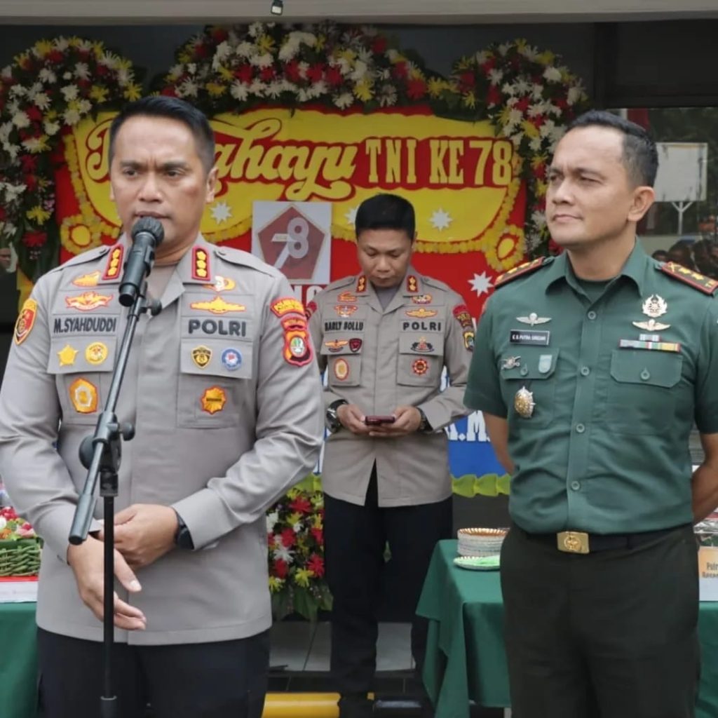 Kapolres Metro Jakarta Barat Kombes Pol M Syahduddi mengatakan, Kedatangan kami ke Makodim 0503 JB dalam rangka menjalin silaturahmi sekaligus ikut melaksanakan syukuran HUT TNI Ke 78.