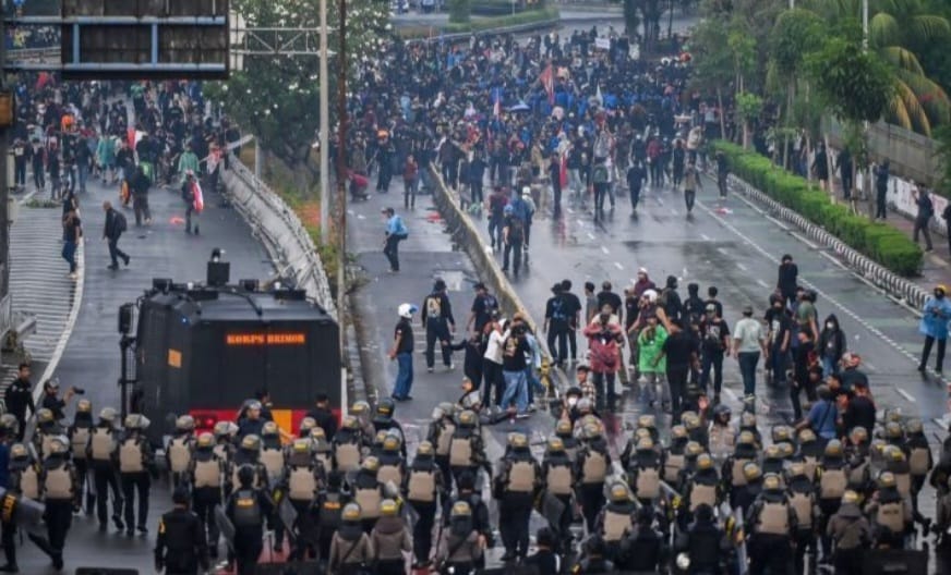 Dua ibu-ibu, Ibu Yani dan Ibu Rita, dari komunitas peduli bangsa asal Kwitang, datang khusus untuk memberikan dukungan kepada para petugas yang tengah berjaga memastikan keamanan wilayah.